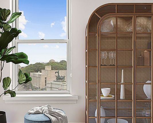 To the right you will find the spacious bedroom, complete with a large closet and an ensuite bathroom. The views of Grand Army Plaza are a dream to both fall asleep and wake up to. The room easily fits a king-size bed and any additional bedroom furniture you may need.