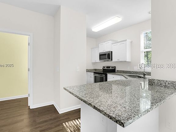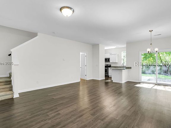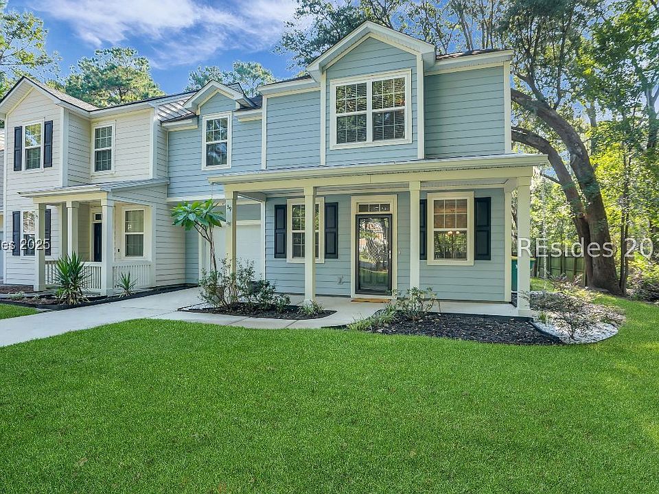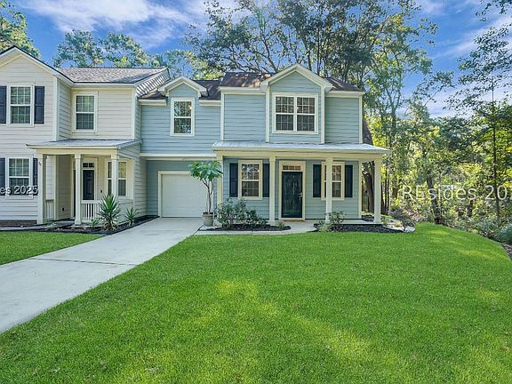Charming and move-in ready! This end-unit Ashton model features 3 bedrooms, 2.5 baths, an extended 1-car garage with extra storage, granite counters, stainless steel appliances, LVP flooring on the main level, brand-new carpet upstairs, and fresh interior paint. The private backyard backs to wooded views and includes a firepit and stringed Edison lights-ideal for Bluffton evenings. Room to add a screened porch or full fence. Located near Old Town Bluffton, Wellstone offers a pool, playground, clubhouse, fitness center, and low community fees-plus easy access to Hilton Head Island and Savannah!
