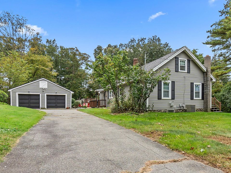 Offer Deadline Monday 10/16 at 12PM. This Cape style home truly offers a multitude of desirable features! It's perfectly situated on a generously sized corner lot featuring a two-car detached garage and convenient access from the horseshoe driveway off Mankill Brook Rd. The kitchen impresses with gorgeous granite countertops and stainless-steel appliances. The addition of a center island enhances both functionality and style. The first floor features a primary suite with a bathroom, spacious closet, and door that provides private access to your tranquil pool area, allowing for a seamless transition from relaxation indoors to outdoor leisure. Another noteworthy feature of the first floor is a versatile second bedroom that offers flexibility as an office or den, catering to various lifestyle needs. The convenience of first-floor laundry adds yet another layer of practicality to this inviting home. Upstairs, you'll discover two generously proportioned bedrooms, providing ample room for family members or guests, ensuring that everyone has their personal space. The large deck and above-ground pool create the ideal setup for outdoor entertaining and are complemented by a welcoming fire pit, which adds a cozy touch for gatherings. Its location ensures easy access to local schools and shopping, and its proximity to RT 495 makes it an excellent choice for commuters. This home is a complete package for modern living in Plaistow, making it a truly exceptional place to call home.