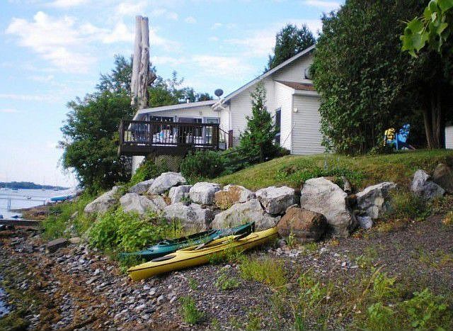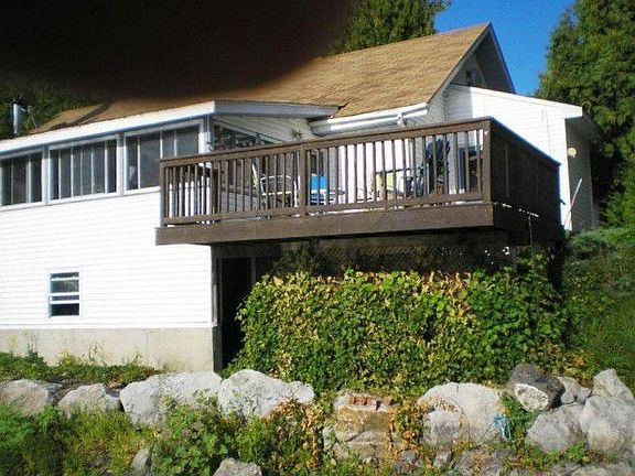 Incredible price for direct owned lakefront with a year round home. This 3 bedroom home has a wall of windows in the family room overlooking the lake. It also features a lakefront deck that is ideal for entertaining. The interior features a huge great room with a lovely fireplace, multi zone heating, and two baths. There is also a detached 1 car garage/storage building for your convenience.