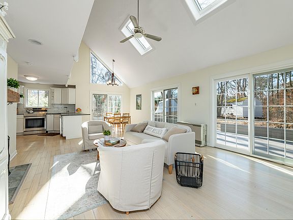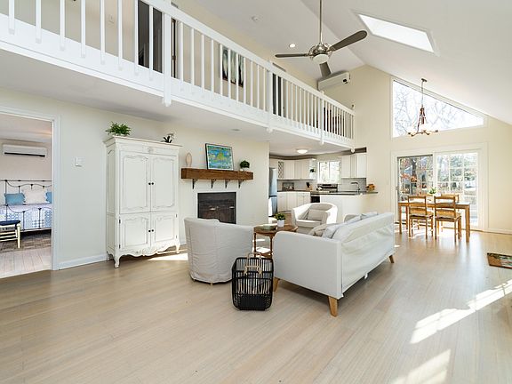 This lovingly maintained four-bedroom Saltbox, set on .95 acres, has been recently renovated and is move-in ready. The location is ideal ~ located on a quiet street right off the bike path, with easy access to the Triangle, State Beach, and downtown Edgartown, where you can enjoy some of the finest shopping and dining on the Island! The spacious open-concept floor plan with vaulted ceilings includes a living room with a wood-burning fireplace, dining room, and kitchen with a breakfast bar for casual dining. Large windows, two skylights, and three sets of sliders that lead to a new wrap-around Azek deck create a welcoming abundance of natural sunlight throughout the house. The primary bedroom, a second bedroom, and a shared full bath are situated at the back of the main floor. A balcony hallway with a creative desk space at the end is on the second floor, with two additional bedrooms and another shared full bath. A full list of recent updates, including the kitchen, bathrooms, floors, AC, and interior and exterior painting, is provided in the documents section of this listing. Being sold partially furnished. The seller requires occupancy Mid-June and August. Mid-August. Contact the listing agent for details. FIRST FLOOR: Enjoy the openness of this fabulous vaulted-ceiling newly renovated home filled with an abundance of natural sunlight. Three sets of sliders allow access to the first floor, from the new Azek wrap-around deck which offers extended room for outdoor entertaining. The open living room with a wood-burning fireplace and dining area are perfect for entertaining, with easy access to the newly updated kitchen with a breakfast bar for casual dining. There are two bedrooms and a full bathroom with a shower/tub and laundry in the back of the house. SECOND FLOOR: The balcony hallway overlooks the first floor with a creative office nook at the end. Two bedrooms and a full bathroom complete this floor.