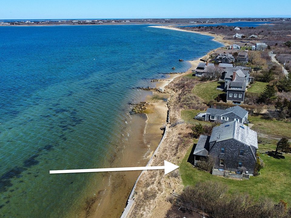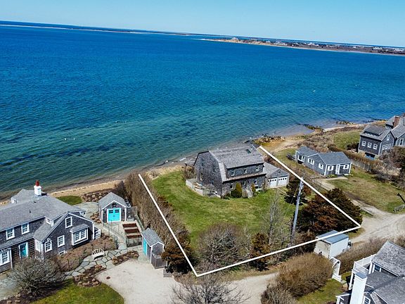 Treasured quietude in Quaise. The four bedroom cottage is poised above the water with expansive views up and down Polpis Harbor from Pocomo Point to Coatue and back toward Town. Surrounding conservation land complements this special hamlet with tranquility and nature. The pre-existing seawall and free standing 2-car garage are meaningful assets to the property. This house was built in 1999 with a full basement foundation. The interior is now open stud and ready for the next owner to refinish.