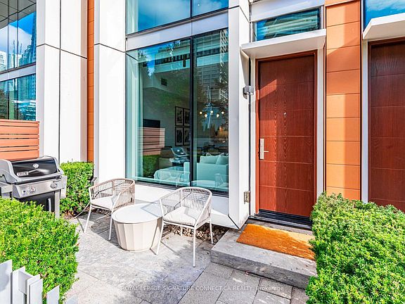 Looking to live at Toronto's most coveted waterfront residence? Look no further than TH132 at Pier 27! This 1+Den, two bathroom townhouse features a thoughtful layout with a den that can effortlessly be used as a second bedroom, providing a flexible space that adapts to your needs. Love to host? This main floor is built for it. The expansive kitchen flows into a bright, open living area, creating the perfect setting for dinner parties or cozy, quiet nights in. The kitchen features premium Miele appliances and a Sub Zero fridge, paired with a large, custom built, white marble island that makes cooking a dream. In the warmer months, enjoy grilling on your private terrace that is equipped with a dedicated gas line. Two storeys of floor to ceiling windows overlooking green space in this quaint, private courtyard, provides a sense of tranquility and balance to the bustle of the city that awaits. There have been over $40,000 of recent upgrades done including lighting with pot lights throughout, custom built in closet units in both the primary bedroom and den, and automatic dual roller window coverings to name a few. See attached feature sheet for full list! Enter directly from street level into soaring 20 ft. ceilings that span the full height of the unit and enjoy 10ft ceilings in both the living room and the primary suite on the second floor. Step outside your unit, and into the best of luxury amenities. 39 Queens Quay boasts both an indoor and outdoor pool, fitness room with sauna and steam room, theatre room, lounge & party rooms, visitor parking, and guest suites. The location delivers unbeatable convenience. You are just minutes from Union Station and the Financial District. Never walk far for your groceries again with Loblaws, Farm Boy, and the flagship LCBO right across the street. Go for dinner at Simona along the waterfront or grab your morning coffee from Dark Horse Espresso Bar, both a short walk away. Experience waterfront living at it's finest.