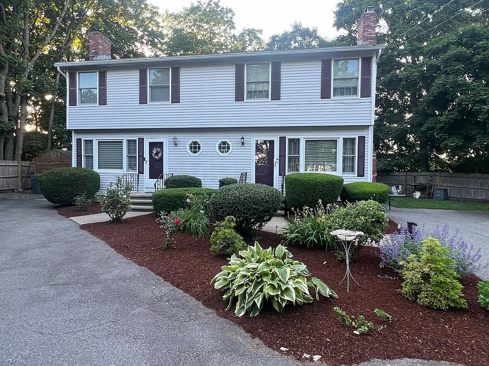Beautifully maintained 2-bed, 1.5-bath condo in Dedham, MA! This inviting home features hardwood floors throughout and a fireplaced living room with a stunning picture window, spilling in the natural sunlight. The kitchen boasts stainless steel appliances, granite countertops, and a spacious island, with direct access to a large wood deck perfect for entertaining. Upstairs, you'll find two generously sized bedrooms and a full bath. The fully finished basement offers a bonus room, in-unit laundry with washer and dryer included, and ample storage space. Additional outdoor storage shed. Conveniently located just a short drive to Legacy Place Shopping Center and with easy highway access. Don't miss this fantastic rental opportunity! Open house on Saturday Feb 22 has been cancelled. Owner has selected a tenant. Rent Fee Includes: Water, Sewerage Disposal, Trash Removal, Extra Storage, Parking, Snow Removal of shared & private driveways. Tenant responsible for electric, gas, cable, internet.