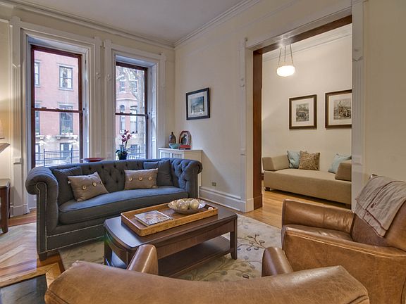 4 Bedroom ClassicExquisite 4 Bedroom, 3 baths in prime Brooklyn Heights. Just off the Promenade! Its amazing details and grand proportions truly make this a breathtaking home. Enjoy 12 foot ceilings, herringbone parquet floors, oversized windows with original shutters, exquisite wood throughout and more! Enter your private foyer that greets you with classic black and white marble tile with a huge mirrored closet at the end of the hall. The meticulously detailed formal dining room is framed in fine wood, with transoms, casement windowpanes, and two huge swinging doors that open to the beautifully renovated kitchen. The kitchen features rich dark wood cabinets, several granite working surfaces, high tin ceiling, large window, all stainless steel appliances, a true cook's delight. The living room is grand and inviting, with its ornate original decorative mantel, lovely herringbone wood floors with dark mahogany inlaid to frame the room's floor. The large windows have classic shutters that fold away into the oversized window frame. The master bedroom has huge windows, original decorative mantle, amazing wood floors, walk-in closet and handsome renovated en-suite master bathroom. The back wing has two additional bedrooms with a full bath between them; the fourth bedroom/den also has an en-suite bathroom perfect for guests. There is a washer and dryer in the apartment, plus an abundance of additional storage space in the basement. This palatial apartment is located on one of the most coveted blocks in Brooklyn Heights. Tucked away on a lovely tree lined block, though still located near Montague Street, The Promenade, Brooklyn Bridge Park, subways, shops and restaurants, plus many additional enjoyable amenities in the area. Come be spoiled.