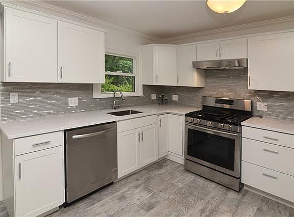 FULLY RENOVATED, NOTHING TO DO, BUT MOVE IN!!! NEW: sheet rock, freshly painted, hardwood floors, tile, windows throughout, carpeting, crown molding, stainless steel appliances, cabinets/flooring in kitchen, 3 fully renovated bathrooms, painted deck, Asphalt driveway, landscaping, mulch, electrical. 4 bdrm, 3 full bths. Lg LR w/FPL to enjoy your evenings, full eat-in kitchen w/stainless steel appliances, marble counters, pantry, Hall bth w/tub & glass sliders fully renovated, Office w/desk & storage, access to side of the house. Master bdrm w/bay window, lg closet & fully renovated master bth w/tiled shower w/rain hardware & glass doors, toilet, vanity. FR w tile floors & lg closet, Extra rm w/pellet stove & lg closet. Fully renovated bthrm w/jacuzzi tub, tiled shower w/rain hardware and river rocks, toilet, vanity and mirrors. Laundry room with shelving. extra room under stairs for storage, utility room, shed. Close to all schools, highways & transportation. Less than an hour to NYC.