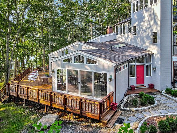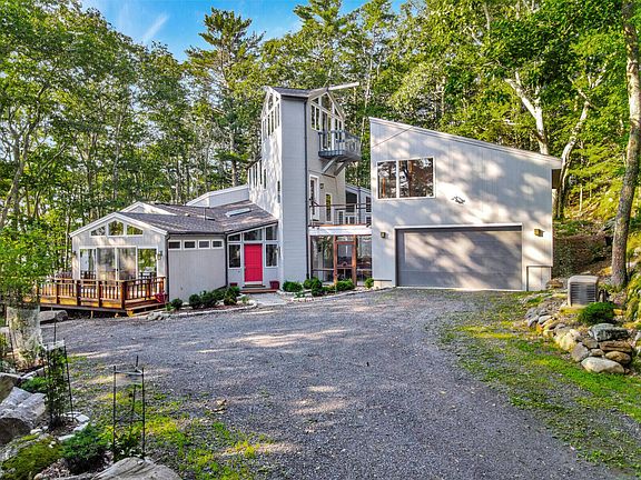 Relax into the tranquility of this contemporary homestead, sited on an enchanting peninsula that reaches out into legendary Robinhood Cove. Now, count your blessings. Offered for sale by just the second owners, this home was designed by architect David Guise and boasts expansive exposed truss work, open and private spaces, soaring raised hearth fireplace, and all the appointments. Entertain from the kitchen, the deck, or anywhere along the tranquil shorefront of this magnificent property. Views and wildlife abound in all directions. Experience everything a coastal property should offer -- privacy, a sandy cove, a granite peninsula, island views, and the thrum of pleasure and working vessels alike. You will enjoy for decades the playful path that connects this artfully designed home with its magnificent waterfront. A chef's kitchen offers cherry and birch cabinetry highlighted with stainless appliances and handsome granite counters. A sunroom connects the kitchen to the deck and provides the perfect space for outdoor dining and relaxation. Watch the seals, the lobster boats, and the stars from a third floor aerie crow's nest. A recently built garage and studio bridge to the home with a glass-walled breezeway and an open balcony. Recent updates by attentive owners are many -- new heating system, automatic generator, and roofing and siding improvements, too. Join the Robinhood Cove community just minutes from Bath with its solitude, camaraderie, and maritime opportunities. Many restaurants within boating distance. Just 45 minutes from Portland Jetport. Make this easy access shoreline yours for decades of paddling, fishing, and boating adventures. No better location for protected deep water moorings and coastal exploration!