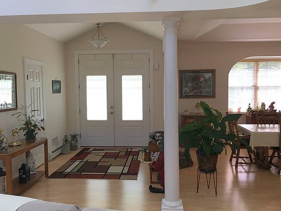 If you are looking for one level living look no more, this Florida style ranch on a slab is light, bright, open and airy with high ceilings, large rooms, neatly taken care of and move in condition. Featuring 3 bedrooms, 2 full baths laundry and lovely porch style sitting room all on one level. 2 car garage and in a private 1.7 acre setting. whole house Generator, updated central air , bosch appliances, alarm system outside shed
