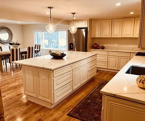 This gorgeous expanded Cape has been completely remodeled. The open, flexible floor plan offers an amazing eat-in kitchen with quartz counters, large dining room and living room. The master bedroom suite features a large closet and a beautifully renovated bathroom. New hardwood floors and fresh paint run throughout this home. The partially finished basement offers approximately 500 square feet of additional heated living space. Brand new roof, siding, A/C system, electrical service, gas hot water heater and furnace. Enjoy the incredibly private backyard from the over-sized deck. There is nothing left to do but move in.