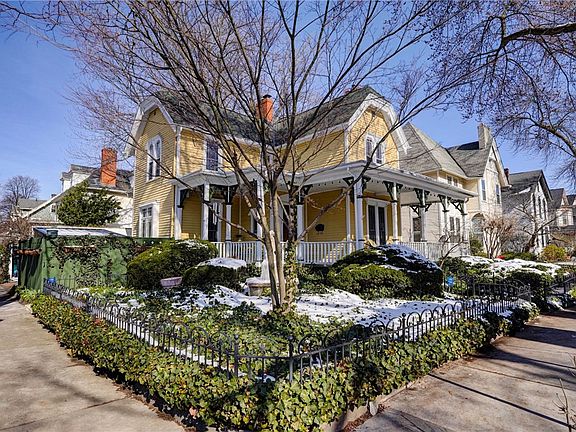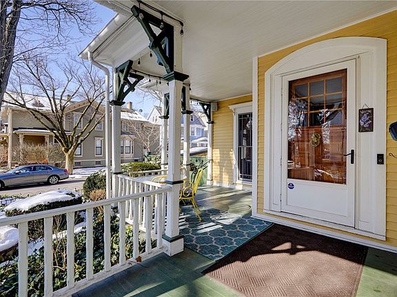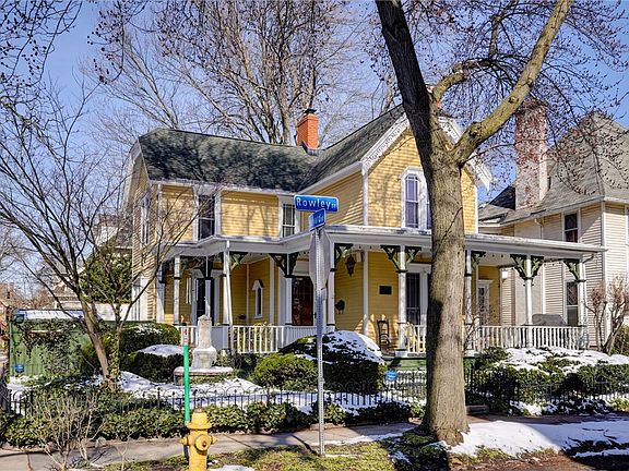 A true Park Avenue entertaining home! As you walk up this stately property you'll notice a wrap around porch overlooking manicured gardens that surround an ornate fountain. Entering the front foyer you'll be greeted by a hand painted faux marble staircase, a cozy sitting room with a gas fireplace, living room, formal dining room with original built in shelves and a large kitchen with an oversized island and a full bathroom. The second floor features four generously sized bedrooms and two full bathrooms, vaulted ceilings in the primary bedroom an en-suite bath. Double staircases, semi finished basement with another full bath and a satellite kitchen, glass block windows. Low maintenance yard!Furnace: 2023, AC: 2023, Roof Tear Off: 2007, Tankless Hot Water Heater: 2021, Electrical: 100 AMPS