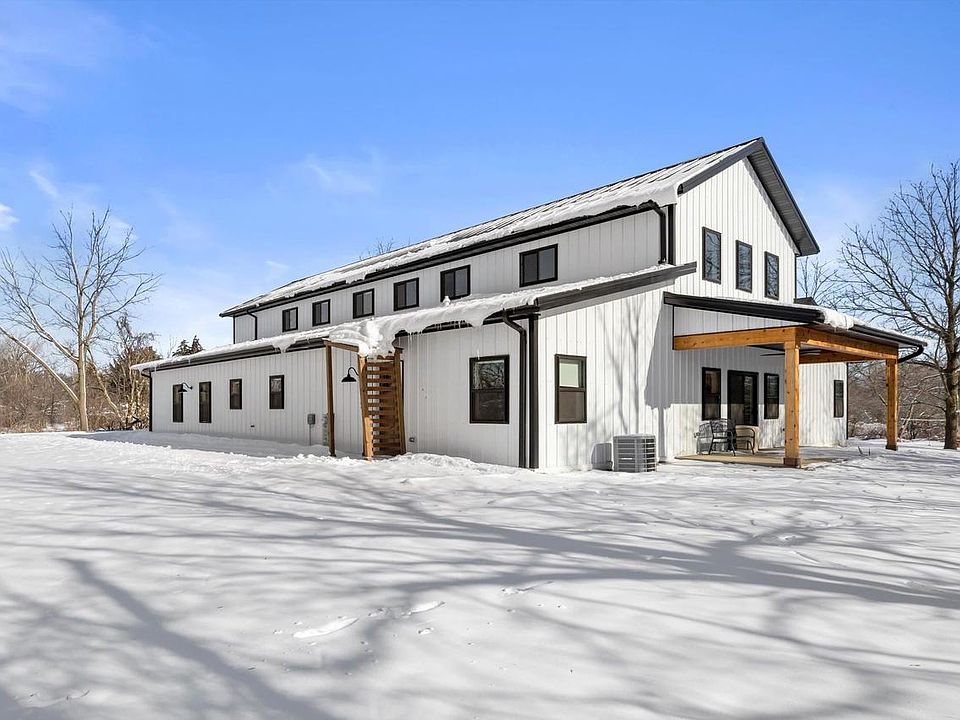 No expense spared on this one of a kind barndominium style home! This beautiful Bower Design & Construction home is situated right in the middle of the 4.12 acre lot. Country living but only 1 mile from town! Some of the features you'll find are gorgeous custom built cabinetry throughout the entire home, a massive main floor laundry room, a primary bedroom bathroom with a large walk in shower w/dual heads and valves, kids quarters upstairs with 2 bedrooms, a lounge area and full bath. There is radiant in floor heat throughout the entire home and the garage. The 1500 square feet garage with hot and cold water is a mechanics dream! Outside you'll find two covered porches, plenty of yard space for playtime, a Ring security system and trails cut out in the back woods. You must see this home!