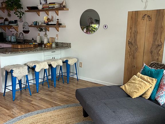 This converted fire station is truly one of a kind. Inside, the space is thoughtfully designed with a Scandinavian touch that blends warmth, simplicity, and modern comfort. Step outside to enjoy a beautifully maintained, fully fenced backyard perfect for letting dogs roam freely and safely. The private side and back patios offer a peaceful haven where you can relax, unwind, and feel completely at home. This is a multi-family home with a quiet, respectful tenant who keeps the lawn looking its best. I simply ask that guests treat this special place with the same care and consideration. Whether youre looking to enjoy cozy nights in, quiet mornings on the patio, or explore the natural beauty nearby, this unique home is the perfect retreat. Water/sewer, garbage disposal, and heat included. Electricity, internet and snow removal non included. Absolutely no smoking inside as the building is directly connected to the fire station. Up to small pet with deposit.