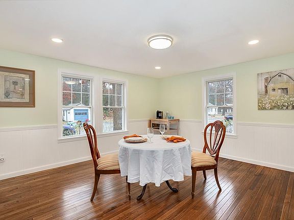 Completely updated Cape on a corner lot! Attractive refinished hardwood floors, freshly painted walls, and recessed lighting greet you. The comfy living room flows seamlessly into the bright dining room with elegant wainscot/chair rail detail. The brand new kitchen boasts new SS appliances, granite counters, American Woodwork cabinets with soft-close hardware, and Pergo Life Proof laminate flooring. Just off the kitchen are the pristine full bath and peaceful three season porch. There is a generous bedroom on the 1st floor and two more good sized bedrooms with wainscotting on the 2nd floor. Live comfortably knowing this home has been meticulously updated with new drywall, blown in wall insulation, new electrical system, new water lines and meter, new roof with 30 yr warranty, 10 yr warranty on new hot air furnace, new ductwork and more! Close to Sandy Pond beach with lifeguards and swim lessons and sports courts. Just 3.5 mi 495, 3 mi to Rte 2, and 1.5 mi to commuter rail to Boston.