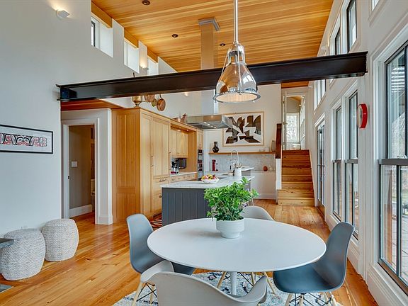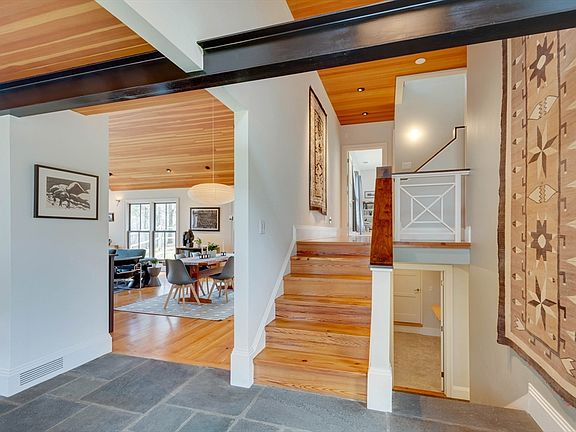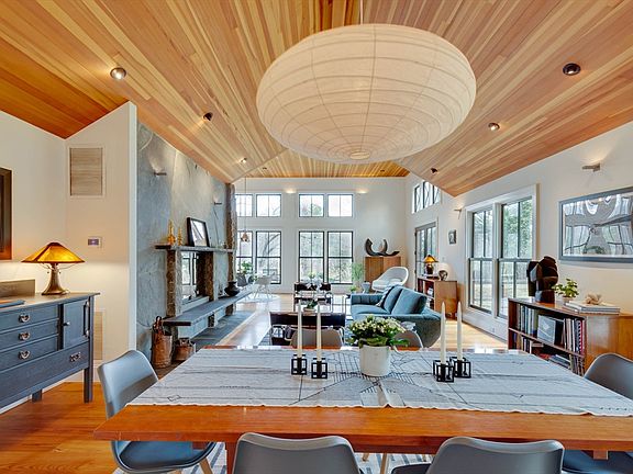 Designed and owned by the principals of Marcus Gleysteen architects, this timeless residence has been featured in multiple design publications as an exemplary blend of Scandinavian modern and New England farmhouse. Walls of Marvin windows connect the home to its compelling environment, blurring the line between indoors and out. Signature vaulted fir ceilings and wide-planked wood floors elevate the open-concept design. The inviting living space is anchored by a grand Blue Stone fireplace and flanked by stone pillars. A private primary suite ensures tranquility, while a separate versatile studio provides flexibility for work, bonus family space or future au-pair or in-law possibilities. Sited on 4.5 magical acres of land with enchanting views from every room and direct access to Lincoln’s extensive network of trails, this home, abutting conservation land and the DeCordova Museum’s sculpture park, offers a lifestyle immersed in nature yet moments from schools and major commuting routes.