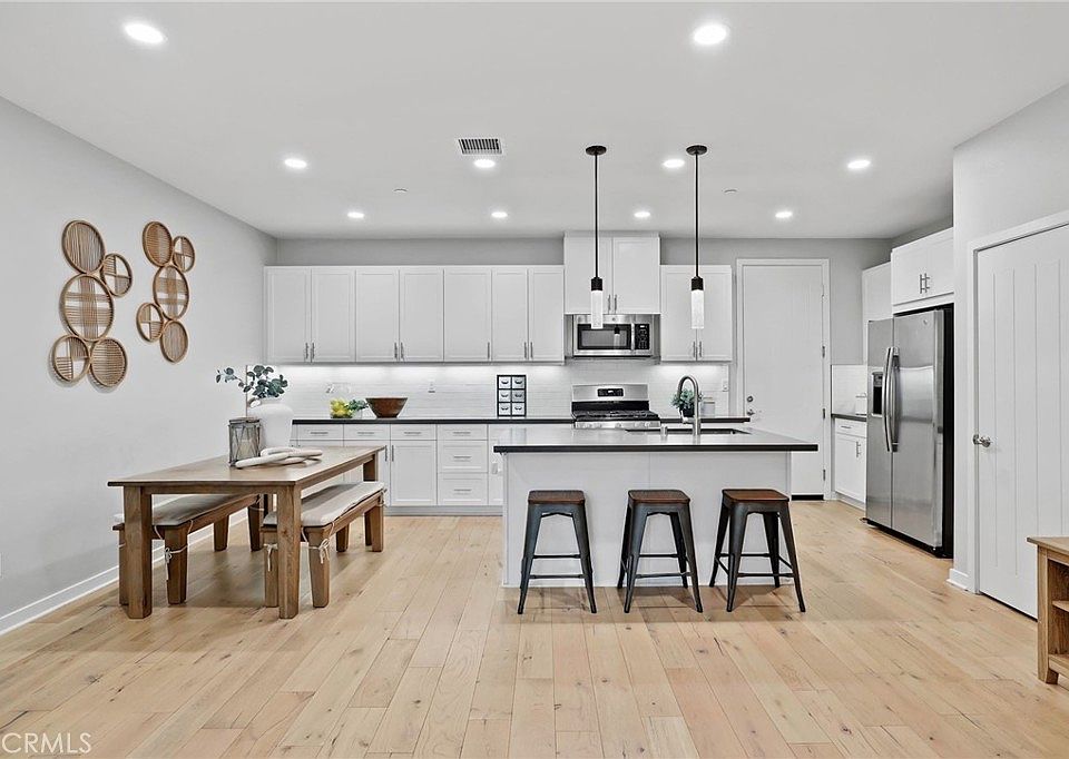 Offering a Warm and Organic Modern Vibe this Beautifully Designed Residence is Curated to be the Ultimate At Home Sanctuary. Located in the Resort-Style community of Baker Ranch and featuring 3 Bedrooms +2.5 Bathrooms this Stunning home has Everything Your Family Has Been Looking For and more! You are greeted with On Trend Wide Plank White Oak Hardwood Floors, Open Concept Great Room and a Light & Bright interior providing the perfect ambiance for your daily routine. The Gourmet Kitchen has been Upgraded Throughout and includes Stainless Steel Appliances, Gas Range, Upgraded Quartz Counter Tops, White Cabinets, Neutral Quartz Center Island, Mosaic Tile Backsplash, Water Softener, Pendant Light Fixtures, and Spacious Walk In Pantry. Upstairs you will find the Convenient Laundry Room, Two Full Bathrooms and Three Spacious Bedrooms. Ease yourself into a New Wellness Routine in your Light & Bright Primary Suite Retreat Upgraded with Plantation Shutters & Modern Ceiling Fan. Indulge in the Spa Like Primary Bathroom, featuring Upgraded Dual Vanities, Designer Tile, Spacious Walk In Closet, & Restorative Walk In Shower. Additional Features include a Charming Front Patio Surrounded By Lush Landscaping, NEW Tankless Water Heater, Spacious 2 Car Garage, Water Softener & Reverse Osmosis...The Elevated Location of this home enjoys easy walking distance access to Exclusive Resort Style Baker Ranch Amenities including 3 Swimming Pools, Tennis Courts, 8 Parks, Hiking and Biking Trails, Numerous Sports Courts, Dog Park, Clubhouse, etc..No Mello Roos and Low HOA... This One is Special...Do Not Wait To See it in Person!