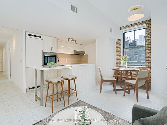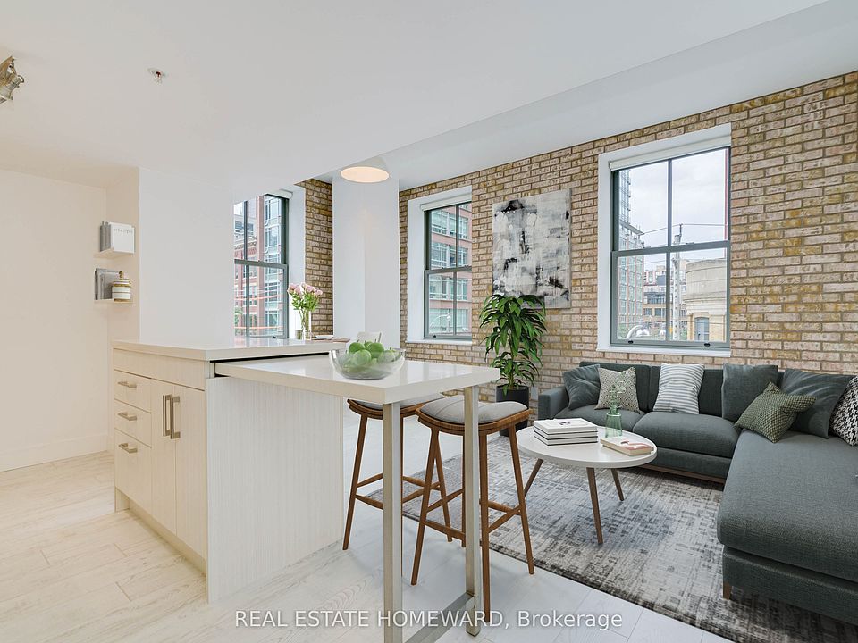 Welcome to King+ Condos - where heritage charm meets modern city living in the heart of Toronto's trendy Design District. If you've ever wished Toronto had a little more of that New York City flare, this corner loft is exactly what you've been waiting for.Rooted in history, this 880 sq. ft. two-bedroom, two-bath loft captures the soul of its former life as a grand Toronto hotel. Exposed brick, soaring ceilings, and warehouse-style windows flood the space with natural light, while the sleek European kitchen - complete with a retractable island - makes entertaining effortless. The iconic views to the north and west over King & Sherbourne are a daily reminder of how far you've come. This is a suite that will truly welcome you home every day.Parking and a locker? Of course. Building amenities? You name it - concierge, visitor parking, fitness centre, party room, and even a guest suite (since everyone will want to visit you here). But what truly seals the deal is the lifestyle that comes with this one-of-a-kind home. Step outside and you're surrounded by some of the city's best cafés, bars, and restaurants. St. Lawrence Market is just around the corner for your weekend ritual, and the TTC is right at your doorstep. With the upcoming Ontario Line station nearby and the exciting redevelopment of Moss Park and the John Innes Community Centre, this neighbourhood is only getting better.Skip the club district - stay on the right side of King. This is downtown living done right.