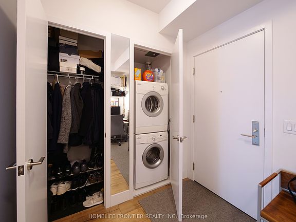 A Beautiful And Bright West-Facing One Bedroom W/ Den In Old Toronto's Design District. This Wonderfully Kept Boutique Suite Along King St. E., 9' Ceiling & Laminate Fl Throughout. Modern Open Concept Kitchen W/ Quartz Counters, Centre Island & Breakfast Table. Steps To St. Lawrence Market, Distillery District, Benefit From Fantastic Proximity To Public Transit, Restaurants, Parks And Grocery Stores. It's Ideal For A Comfortable Work From Home Experience. Photos are from the previous listing.