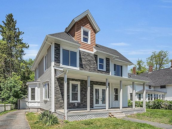 BACK ON THE MARKET! Buyer got cold feet. Welcome to this fully renovated home in Ware! The 1st floor boasts an open floor plan featuring spacious living and dining areas and a large kitchen with sleek floors and granite countertops. This level also includes a full bathroom and two versatile bonus spaces, perfect for a bedroom, office, or playroom. Upstairs, discover 4 additional bedrooms and another full bathroom, offering ample space for family and guests. The walkup attic provides additional storage or potential for future expansion. Recent upgrades include a new roof, siding, and central heating and A/C on the first floor, complemented by electric baseboard heating on the second floor. Enjoy outdoor living with a charming farmer's porch at the front and an oversized deck at the back, ideal for entertaining. A detached one-car garage adds convenience.