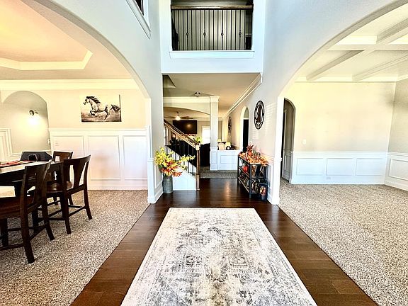 With 4,326 sq. ft., this 5-bedroom, 4-bath home is built for comfort and entertaining! Step inside to a grand two-story foyer with gleaming hardwood floors, setting the tone for the entire home. The main level offers a spacious office/living room, an elegant formal dining room with coffered ceiling and abundant natural light, and an extra-large great room featuring a cozy wood-burning fireplace. The oversized chef's kitchen is a true highlight with granite countertops, stainless steel appliances, custom cabinetry, and room for both a breakfast area and an additional dining space. A large guest bedroom with full bath completes the main floor. Upstairs, the luxurious owner's suite showcases a private sitting room, a spa-like bath with a 6-ft soaking tub, walk-in tile shower, and an expansive walk-in closet. Three additional bedrooms, including a full in-law suite, plus a convenient laundry room and versatile bonus/loft area provide ample space for family and guests. Outside, enjoy the privacy of a fully fenced backyard with open patio—perfect for gatherings or quiet evenings. Parking is a breeze with a like-new 2-car garage, spacious driveway, and cul-de-sac lot.