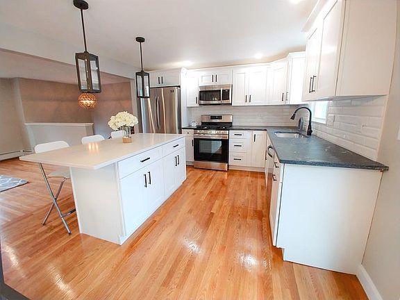 This classic split entry home in a desirable neighborhood has been newly remodeled from top to bottom! Stunning open concept living space designed for entertaining! Gorgeous new farmhouse style kitchen with white shaker cabinets, dramatic black marbled granite, large island with white Calacatta quartz & seating for 4. All new stainless appliances, 5 burner gas range. Fireplaced living room open to sunny dining room with slider leading to private deck and fenced rear yard. Upstairs has 3 good sized bedrooms all with double closets and a newly remodeled full bath with double sinks, quartz countertop, newly tiled floor & tub surround. Downstairs is a private oasis with bright bedroom, full bath with marble topped vanity, laundry & huge family room. Storage/utility room, 1 car garage complete the lower level. New roof, new Harvey windows, newly painted inside and out. Spacious level 30k sf lot with great back yard. Easy access to Route 3. Vacant and safe to show! OFFER DEADLINE Mon 8 pm