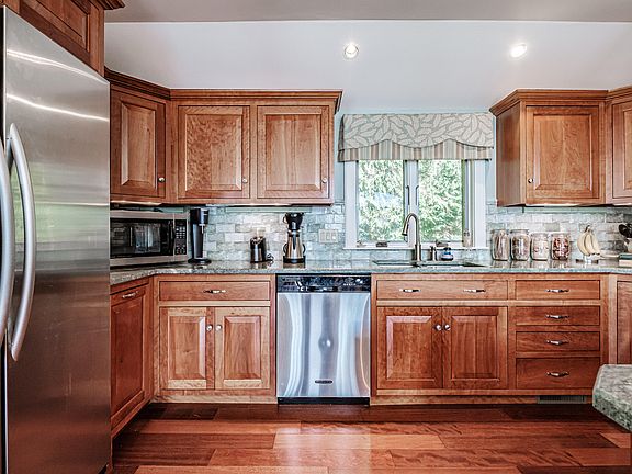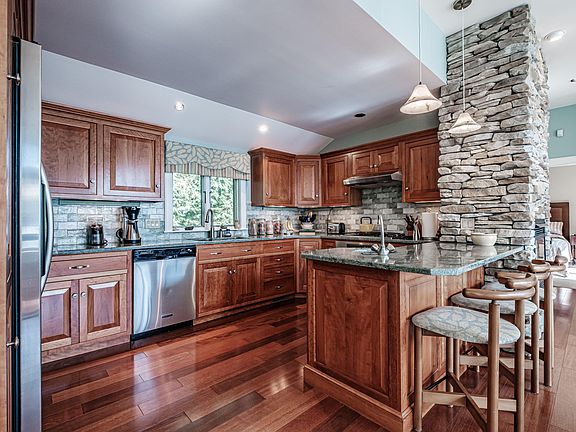 Step into this ''EXQUISITE THOMPSON LAKE PROPERTY'' with its three-bedrooms, two baths, and ''STUNNING GUEST HOUSE''. It's pristine 435' of ''EAST SHORE'' waterfrontage offers a sandy beach and place for a dock. As you approach the water's edge you are treated to expansive views of Thompson Lake along with spectacular evening sunsets. The gourmet kitchen is adorned with granite countertops, cherry cabinetry featuring high-end appliances. Seamlessly transitioning into the living room, it boasts beautiful water views, vaulted ceilings, hardwood floors, custom lighting, field stone gas fireplace, entertainment area with built-ins and dining area overlooking a serene deck with hot tub. Enjoy one-level living with lake views from the primary bedroom which completes the main floor. Descend to the lower level on an artistically crafted cherry staircase to discover two bedrooms, full bath, laundry room and additional room ideal for an office, all with water views. Outdoors there are multiple gathering spots, including a spacious lawn, firepit, sandy beach, and stone steps to the dock area. Located in the woods, the shoreline features natural landscaping meandering along the water's edge up to the sandy beach. Notable oversized detached two car garage with heated work shop and guest house above; features custom cherry woodwork, vaulted ceilings, hardwood floors, full bath, kitchenette with cherry cabinetry, spacious great room, expansive windows, two story stone surround gas fireplace and spacious sleeping loft. Thompson Lake is known as one of southern Maine's cleanest and largest lakes allowing you to enjoy a multitude of activities such as swimming, boating, waterskiing, fishing and kayaking located only an hour from Portland's rocky coast, beaches, the Jetport, restaurants, Sunday River and Pleasant Mountain Ski Resorts. Oxford Casino, grocery stores, and shopping are conveniently located near-by. Start making your own Maine memories!