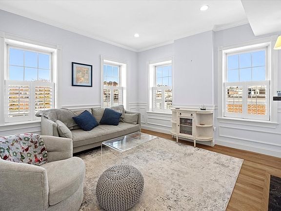 This top-floor 2-bed, 2-bath condo is a perfect blend of comfort and convenience—ideal for first-time buyers, investors, or anyone seeking a flexible floor plan. The sunlit living room, featuring a cozy gas fireplace, offers three exposures with city views. The kitchen is outfitted with granite countertops, stainless steel appliances, and gas cooking, perfect for home chefs. The spacious primary suite includes an en-suite bath, while central air and in-unit laundry add modern ease. Ample private storage and potential for a shared roof deck elevate the appeal. Situated near Whole Foods Plaza, Main Street shops, the Orange Line, and bus routes, this home delivers urban convenience in a sought-after location. Pet-friendly and move-in ready!