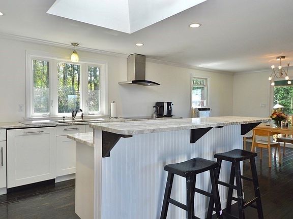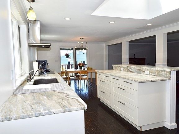 1ST SHOWINGS BY APPT ONLY SAT 5/14 & SUN 5/15 FROM 9AM TO 6PM EACH DAY & FROM 4:30 TO 7:30 PM MON-FRI. Spectacular ranch with so many recent updates, including huge gorgeous granite kitchen (2015) with island, skylight, built ins, cabinets galore & tons of space to entertain! Kitchen open to spacious living room with cozy pellet stove & bright, sunny bay/bow window. Sliders off dining rm to country porch style deck & private back yard w/ much room to roam, including scenic views from front of home. Spacious, brand new fully updated bath (2022) with laundry. Large main bedroom ensuite with walk-in closet and private bath.Huge 2nd bedroom w/ 2 closets could be separated into 2 bedrooms via new wall to make total of 3 beds.(see firm remarks) Newer flooring throughout. Finished basement provides extra space for either an additional bedroom, playroom, etc..the possibilities are endless! New windows, front door and siding in (2019) New Garage doors (2022) Whip City Fiber!