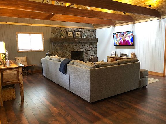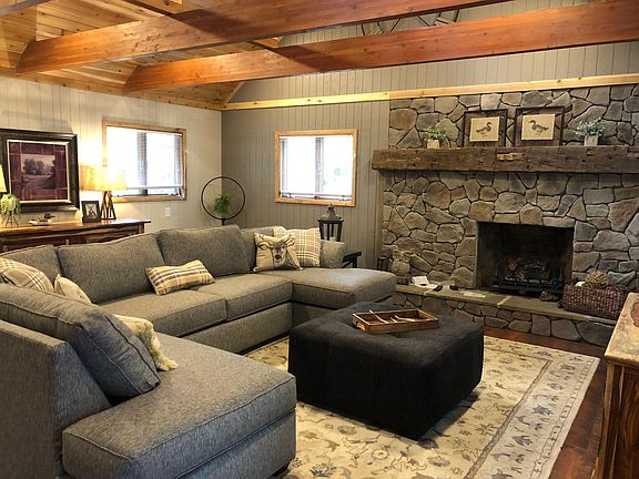 This newly remodeled and beautifully furnished 4,000+ square foot lakefront home is in Treasure Lake, Dubois, Pa with 250' of pristine lake frontage on the main lake. Enjoy the large 1 acre private lot, the river rock walkway to the flagstone lakeside fire pit, beautiful scenic views, plentiful wildlife, and multiple large decks just steps from the waters edge. Use the provided kayaks to visit the lakeside lodge for Sunday brunch or simply to explore the various coves of Treasure Lake. The lodge is a short .25 mile walk and includes a bar, restaurant, large pool, tennis courts, marina, and more.