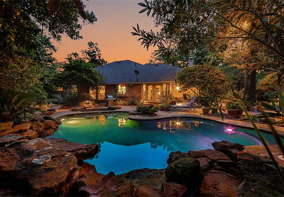 Updated patio home with pool & spa on wooded culdesac lot! Ideal floorplan with wood floors, 2 living areas, study/3rd bedroom, island kitchen, built-ins in dining, study & family, split bedroom plan. Updates: roof, interior & exterior paint, dishwasher, water heater, updated baths & kitchen, hardware, lighting, landscaping, wood flooring, shutters & more. Electric range can be converted to gas. Full irrigation system & surround sound. Deck overlooks pool/spa with programmable Aqualink.