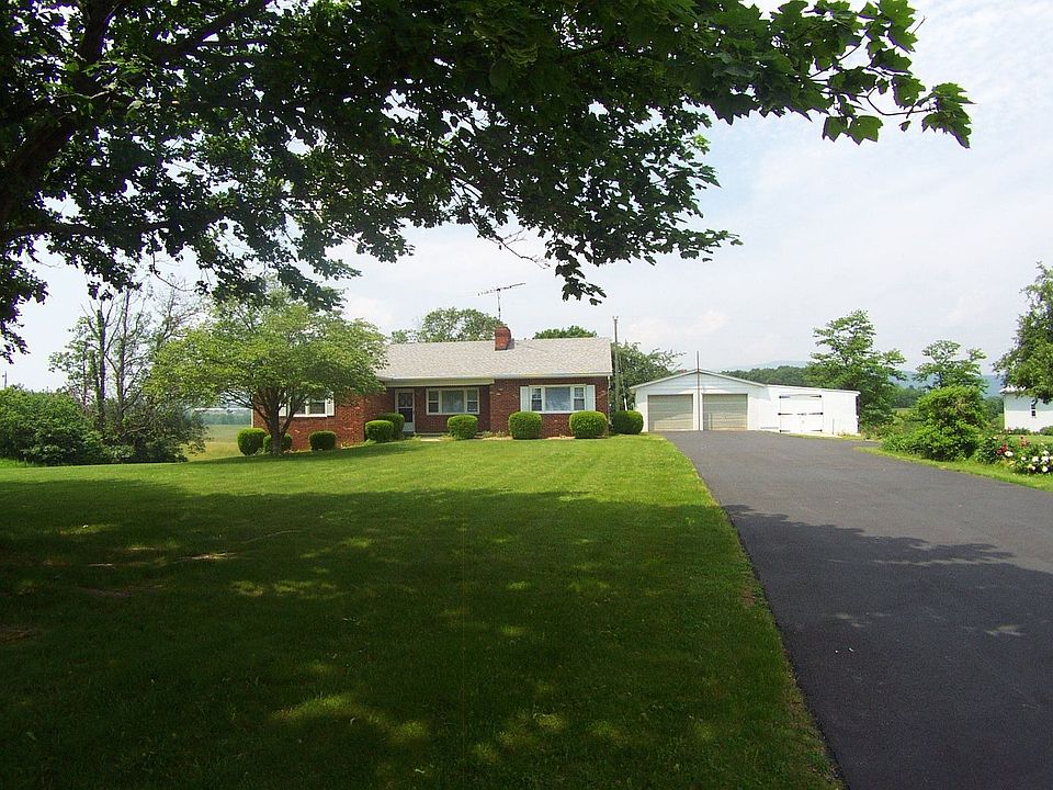 Custom, quality built ranch with good bones - just some cosmetic updates will make it your own. 2 fireplaces, formal living room, large family roomand eat-in kitchen for family gatherings. Walk-up attic. Replacement windows and A/C. All appliances convey 'as is'. Walkout basement partially finished. Spetacular views, garden space, fruit trees, detached garage with work shop. Fireplaces need liners if wood is to be bruned - just cleaned. OK for gas logs.