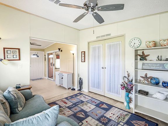 ANNUAL or SHORT-TERM RENTAL: Located in the desirable 55+ gated community of Jamaica Bay Village, this fully furnished 2-bedroom, 2-bathroom mobile home offers 1,428 square feet of comfortable living space with a beautifully landscaped view. The home features tile flooring throughout, a screened lanai perfect for relaxing outdoors, and a covered carport. This smoke-free, pet-free residence is ideal for those seeking a peaceful and active lifestyle.