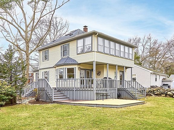 This move-in-ready hip-roof Colonial exudes classic charm while offering modern comforts! Nestled on a spacious corner lot, this early 1900s home is bathed in natural light thanks to its updated, oversized windows.High ceilings, gleaming hardwood floors,& an open-concept first floor enhance its warm and inviting feel.The kitchen is both stylish and functional, featuring brand-new appliances, ample cabinetry,& generous storage. Seamless access from the kitchen & dining room leads to a multi-level deck—perfect for outdoor entertaining—overlooking a beautifully landscaped, spacious yard.The primary suite offers a private, oversized bath, while the convenient 2nd floor laundry adds ease to daily living. A 3rd floor bonus space provides the perfect spot for a home office, playroom, or creative retreat. Located in a highly walkable neighborhood, this home is just moments from downtown, top-rated schools, & scenic walking & biking trails. Ample storage & a garage complete this must-see home!
