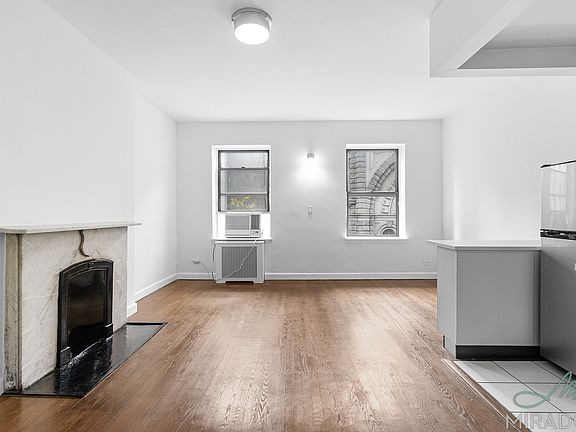 Decorative fireplaceRenovated studio apartmentExtra high ceilingsStainless steel appliancesPleasant tree-lined streetWell maintained pre-war building