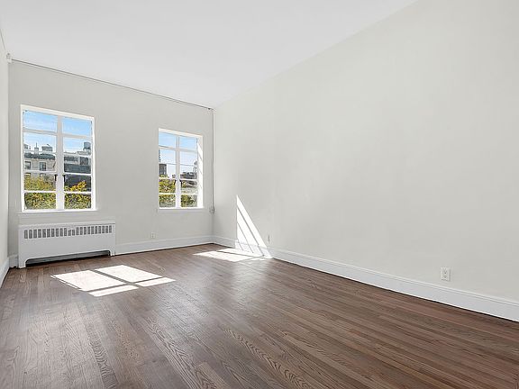 Situated in a historic building, 4A offers a gracious, generous living room with soaring ceilings. Whether relaxing or entertaining, you can easily accommodate a couch, coffee table, dining table, chairs, and console.