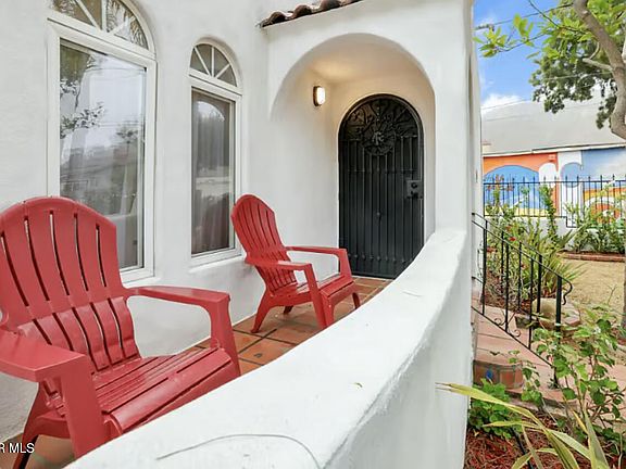 The front home is a lovingly renovated 1925 Spanish-style charmer featuring 3 bedrooms, 1 bath, and just under 1,000 sq. ft. Boasting arched ceilings, new flooring, recessed lighting, a tiled fireplace, and a fully furnished interior, this home is designed for modern comfort while preserving its historic character. The fully enclosed, gated front and backyard is a private oasis with a huge Saltillo tiled patio, built-in barbecue, and a bounty of fruit trees including orange, lemon, guava, loquat, and peach. Currently operating as a midterm rental, it consistently generates $3,900/month and is always occupied.