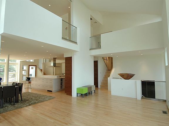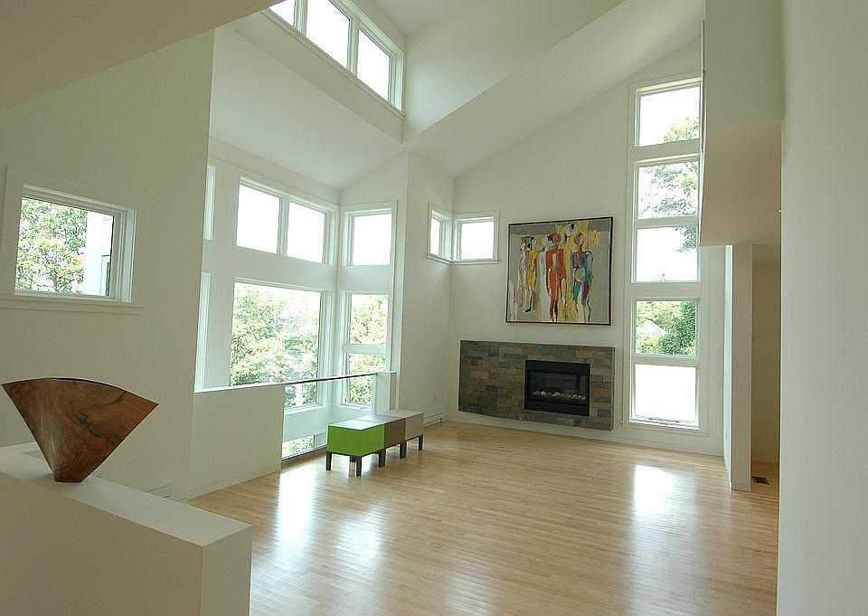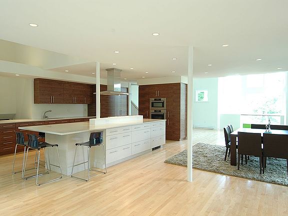 Exceptional Architect designed contemporary home located in the Bird's Hill area, features a beautifully planned open concept living space with gas fireplace and floor to ceiling windows which looks out on the western horizon. LR flows seamlessly into the dining room, kitchen and sitting space with patio. Kitchen features an oversize center island with top of the line Miele gas cooktop, refrigerator, wall oven, 2nd oven, microwave and ample cabinet space. Unique master bedroom suite includes dressing area with custom cabinetry, private bath, study, and balcony from which you can enjoy beautiful sunsets. Three additional bedrooms are on the second level each a good size and one with it's own bath. Lower level has an extra large library/studio space, an exercise room, family media room, laundry room and additional storage space available. The home is accessed from a private way with a 2 car garage and parking for 3 add'l cars. Easy walk to train and has access to major highways.