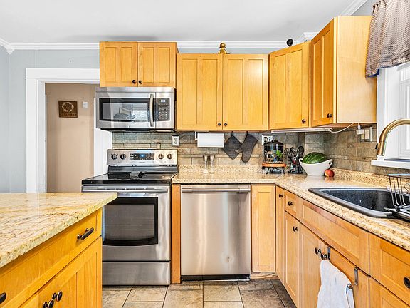 Welcome to 39 Westmore Avenue and this charming bright contemporary cape style 3 bedroom 2 bathroom home in a neighborhood setting on a dead-end street. Great open floor plan on first floor with updated tile kitchen with granite island and stainless appliances open to a spacious living room and dining area with hardwood floors and two first floor bedrooms and full bathroom. You will appreciate the remodeled second floor primary bedroom offering loads of natural light, hardwood floors, and a beautiful granite bathroom featuring radiant floor with dual vanities, laundry, and tiled walk-in shower. Entertain guests or relax outside on the large peaceful deck overlooking a wonderful backyard.