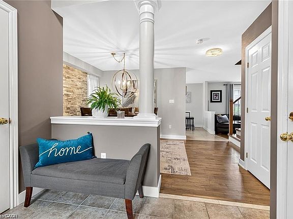 Welcome to this John Bruce Robinson quality-built home, ideally situated in one of Binbrook’s most desirable pockets. Nestled on a quiet, tree-lined street with no sidewalks, this property offers both charm and privacy. The exterior features an interlock stone driveway with front, side, and rear pathways, beautifully landscaped yards with a gazebo, shed, raspberry bushes, and a vegetable garden—showcasing pride of ownership inside and out. A natural gas garage heater adds both comfort and convenience year-round. The main floor offers a spacious layout, including a separate dining room with a feature wall, a cozy living room with a gas fireplace, an eat-in kitchen with quartz countertops, backsplash, and walkout to the backyard, plus a convenient main floor laundry room and a 2-piece bath. Upstairs, you’ll find three well-appointed bedrooms, including a primary retreat with a walk-in closet and 4-piece ensuite. Two additional bedrooms share a second 4-piece bath. All three upper-level bathrooms feature quartz counters, adding a modern touch. The fully finished basement expands the living space with a second kitchen (full stove), a 2-piece bathroom, two storage areas, and versatile rooms ideal for extended family or in-law potential. Completely carpet-free, the home showcases hardwood, tile, laminate, and engineered flooring, complemented by a wood staircase and fresh paint throughout. This smoke-free, pet-free home is extremely clean and truly move-in ready.