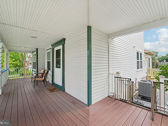 Imagine strolling down the curving brick walkway, up to the storybook porch and stepping into this beautifully maintained single family home ideally located with ZERO through street traffic! Discover the tremendous value in its massive wrap-around front porch during heavy thunderstorms. Enjoy 3 upper level bedrooms, 2 upper level full bathrooms, a powder room on the entry level and a possible 4th bedroom in the finished basement. Appreciate the NEWER (2023) sleek modern kitchen with light granite countertops, soft-close drawers & cabinets, stainless steel electric flat top stove, exhaust hood that now vents to the exterior, refrigerator, kitchen light fixtures, sink, faucet and a NEW TOP OF THE LINE BOSCH dishwasher. Don't forget to check under the kitchen sink for the super convenient water filtration system for easy drinking water. Be thankful for the generous heat produced from the black cast iron wood stove during winter storms in the spacious family room off the kitchen. See yourself taking advantage of the huge, fully fenced, level backyard with a stone patio. And pay no mind to the underground drainage system keeping your yard dry. Have peace of mind with a BRAND NEW TRANE High Efficiency HVAC system (2024). Enjoy 2 spaces in your own driveway or park off the street. Live with NO HOA or HOA FEES!! Make an appointment to go see this GEM today!