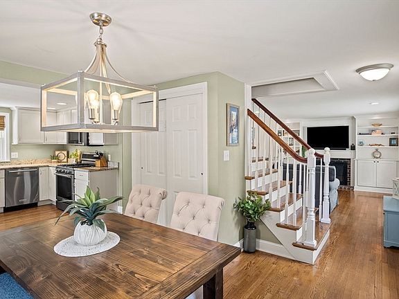 Completely updated and move-in ready, this 4-bedroom, 2 full bath dormered Cape with a finished walk-out basement will steal your heart. Step inside & instantly enjoy the comfort of Central A/C and be drawn to the bright kitchen featuring gas cooking, modern finishes, & a pantry closet leading to an open dining area. Off the kitchen is a massive deck that leads down to another outdoor entertaining area & a large fenced-in backyard. Inside, the 1st floor boasts a bedroom & a newly renovated full bathroom. The 1st floor also features a beautiful fireplace living room with custom built-ins. Upstairs, you'll find 3 more bedrooms & another updated full bathroom. The primary bedroom is light & airy, with a spacious custom closet. The finished basement offers a family room, office, storage, & utility area, all with a walk-out to the covered patio & yard. Fantastic location close to the MBTA, ferry, Esker Park, beaches, highways, & local eateries, this home is sure to check all the boxes!