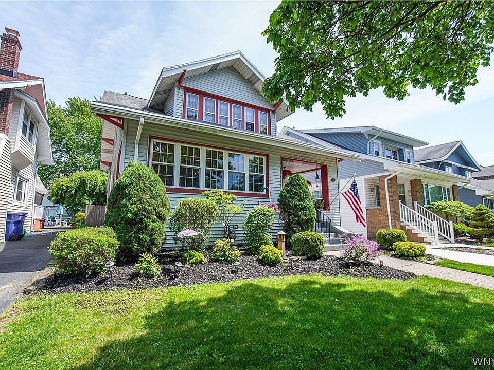 Welcome to 39 Winston Road, a meticulously maintained 4 bedroom home in the heart of North Buffalo. This charming residence features a park-like backyard with deck and new awning, a pergola patio complete with a hot tub and a paver patio with a fire pit- perfect for outdoor relaxation and entertaining. Inside, you'll find gleaming hardwood floors throughout. The completely updated kitchen boasts stainless steel appliances, quartz countertops and a breakfast bar. The formal dining room is perfect for gatherings, while the inviting living room features a gas fireplace and French doors leading to a sunroom with a wall of windows. The master bedroom is a serene retreat, offering a cedar walk-in closet and a cozy window seat. Each of the four bedrooms includes walk-in closets with ample storage. Additional highlights include a brand new concrete driveway, enhancing curb appeal and functionality. This home seamlessly combines classic charm with modern amenities, creating a comfortable and stylish living environment.