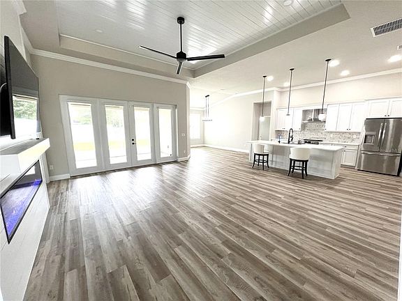 Built in 2023! This 4 bedroom, 3 bathroom, 3 car garage home has been meticulously cared for, maintained, and upgraded. This home was built with the Florida Lifestyle in mind! Indoor & outdoor open spaces, bright natural light all year round. Located in one of Palm Coast most desirable "W" sections in the Pine Lakes community. Enter through the beautiful 8 foot double glass panel doors inviting you into an open floor plan with high ceilings, crown molding, tray ceilings, wood plank ceiling accents, and fireplace wall feature. Plantation Shutters on all windows and hunter shutters on the doors which open to your screened in back patio. The kitchen features a large island with quartz counter tops, quartz farm sink, and drawer microwave. Enjoy the soft water and reverse osmosis system which has been installed under the kitchen sink and a whole house water softener in the garage. Upgraded hardwood soft close cabinets and dovetail drawer construction with pull-outs for more space. Glass subway tile back splash, stainless steel range hood, dishwasher and refrigerator and walk in pantry. Inside laundry room with a full sink, cabinets and newer set LG washer and dryer. The owners suite features a tray ceiling in the bedroom and the bathroom features a walk-in shower, freestanding tub, double sink vanity, walk-in closet, and built-in linen closet. Custom closet upgrades throughout the home. Quartz counter tops in all bathrooms. Ready for the pool of your dreams with a third full bath with an access door from the lanai. Luxury plank flooring throughout the entire home. The second bedroom has a private bath for your guests and the third bedroom has the ability to have a private bath as well with access to the lanai. The fourth bedroom can be used as an office or flex room with plenty of closet space. A full three car garage, 33’ x 21’ with high ceilings, LED lighting, and extra storage shelving unit giving you plenty of space for your toys. A separate utility room houses your air handler & water heater. Energy efficient features include spray foam insulation, energy efficient windows, smart thermostat, google smart home and motion detector cameras and flood lights. Sprinkler system irrigation on your own well, privacy fence and new gutters with leaf protectors recently installed. Conveniently located in the heart of Palm Coast, Pine Lakes offers a quiet, well-established setting close to top-rated schools, shopping, dining, golf courses, and scenic walking trails. Centrally located between Daytona Beach and historic St. Augustine, with easy access to Jacksonville and Orlando.