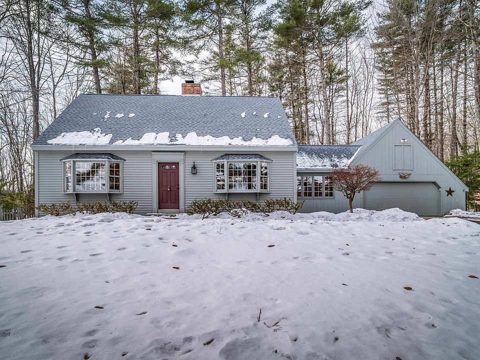 This charming 3-bedroom cape-style home located in Center Harbor NH exudes New England charm. Situated adjacent to Waukewan Golf Course, enjoy views of the 17th fairway from your doorstep, offering a serene backdrop. Step inside to discover the warmth of wide pine floors throughout, adding rustic elegance to every room enhanced by the beamed ceilings of the front to back open living space.The favorite room in the home is the sunroom overlooking the serene wooded back yard creating the ideal space to relax in the warmth while enjoying the peace of the outdoors. With its inviting layout, this property is perfect for cozy gatherings or quiet evenings by the wood burning fireplace. A first floor bedroom with its classic bay window offers views of the golf course and beautiful natural light. A spacious mudroom welcomes you home and the first floor den/office is situated perfectly to provide private work from home space. The full unfinished basement and attached two car garage offer added utility. An active lifestyle can thrive in this location just minutes to multiple lakes, trails and the golf course right out your front door. Experience the quintessential New Hampshire lifestyle in this picturesque setting.