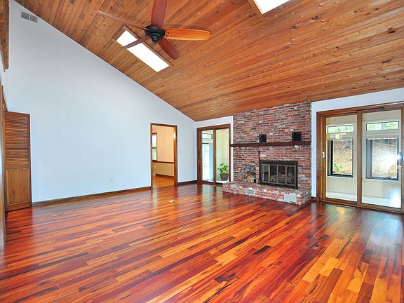 A hidden gem! Discover your own private oasis in this contemporary home that defines privacy and a connection to nature. Step into the breathtaking great room with its soaring vaulted ceilings, hardwood flooring, a gas log fireplace, a wet bar, two skylights that flood the space with natural light and two sliders leading to the sun room. The heart of the home is the updated kitchen boasting oak cabinetry, granite countertops, stainless-steel appliances, hardwood flooring, a tile backsplash, a breakfast bar, a dine-in area, recessed lighting and a pantry. The adjacent dining room, with a wood burning fireplace, hardwood flooring and chair rail molding, is perfect for intimate dinners or festive gatherings. The bright sanctuary of the sun room features a cathedral ceiling, tile flooring, panoramic outdoor views and a slider to the deck. On the main level you'll also find the Primary bedroom, a serene and private retreat, with hardwood flooring, a walk-in closet and a designated full bath with tile flooring. A spacious second bedroom with hardwood flooring and recessed lighting and a beautifully remodeled full bath complete the main level. Ascend to the upper level to a gorgeous loft with hardwood flooring, built-in cabinets and bookshelves and a cathedral ceiling. The expansive (17'x17'), finished lower level is ideal for a recreation room. Enjoy the peaceful tranquility of nature at its best as you relax and unwind on your private deck. Come on...Let's take a look inside!