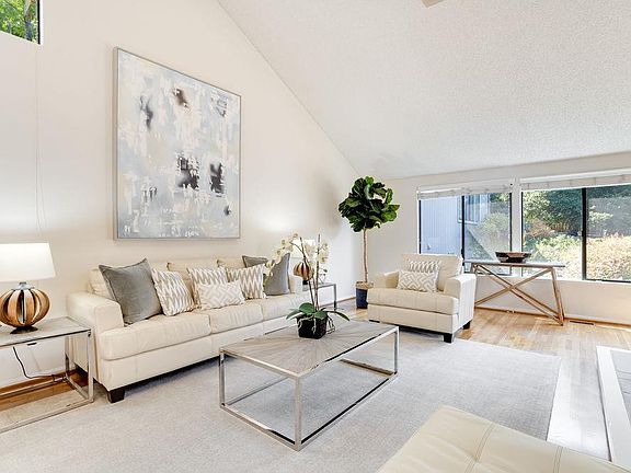 Beautiful townhome in idyllic setting and located in the desirable 16-acre Toyon Farm complex - a private Los Altos enclave which is peaceful, quiet and highly convenient, within walking distance to shopping & close to all commute routes. This unit has one of the best locations in the entire complex, adjacent to flat walking paths and also featuring a Southwest exposure, offering natural light and beautiful vistas of the surrounding mature trees, lawn areas and a spacious deck for entertaining. Hardwood flooring, soaring two story ceilings, kitchen with granite counters, tile backsplash, multiple clerestory windows bringing in additional natural light and plantation shutter style blinds. Main level primary bedroom with attached bath and two bedrooms and a bath upstairs, this floor plan is highly desirable. Excellent Los Altos Schools including Montclaire Elementary, Cupertino Middle & Homestead High School. Detached two car garage with extra large storage area and workbench area.