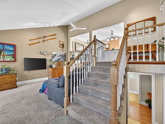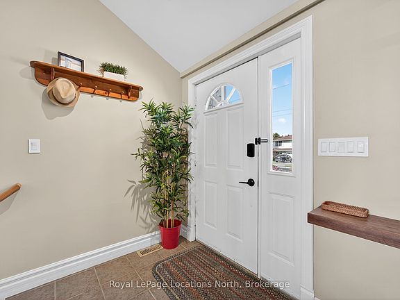 Wonderful 1,905 sq. ft. family home situated on a massive 67 x 168 full town lot in the heart of Collingwood. Nestled on the numbered streets walking distance to downtown, this welcoming 3+1 bed, 2+1 bath home offers space, character, and versatility for the modern family. Step inside to a unique layout featuring a bright sunken living room with vaulted ceilings and an open kitchen and dining area that walks out to a two-tiered rear deck - perfect for entertaining. The primary suite includes a walk-in closet and 4-piece ensuite, while two additional bedrooms and a beautifully updated main bath with heated floors complete the upstairs. The lower level offers endless possibilities with a side entrance, wet bar, spacious family/rec room, and a fourth bedroom - ideal for guests, a home office, or potential in-law suite. Outside, the large backyard is a true retreat. Grow your own vegetables in the garden, enjoy quiet evenings under the stars, or host summer gatherings with space for the whole family. Recent updates include new furnace (2025), new shower in basement bathroom (2025), new kitchen range (2024), new garage door opener (2023), and updated main bathroom (2022). Book your private showing today!