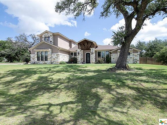 Fabulous custom home situated in secluded neighborhood in Belton School District with NO CITY TAXES! Stunning upgrades throughout with stained concrete floors and majestic wood accent beams. Fantastic kitchen features a farmhouse sink, stainless steel appliances, granite countertops and an inviting stone breakfast bar. This amazing home offers three bedrooms with split floorplan. The master suite includes gorgeous spa like bath with walk-thru shower and separate tub, double vanity and walk in closet. The upstairs family room has wet bar and full bath. The covered porch with huge backyard is perfect for entertaining and family living! This home features a three car garage and is very energy efficient with spray foam insulation as another valuable upgrade!