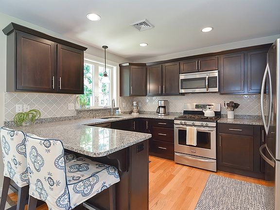 Best value in Milton. Newly built in 2014, offering all of the modern amenities expected in a newer home with a convenient commuter location. Open floor plan with high ceilings. Stylish kitchen, dining area, family room with gas fireplace and half bath. Slider to back deck, newly fenced in yard and patio offer a retreat to unwind. Upstairs there are 4 large bedrooms & 2 full baths, including a primary suite with walk-in closet/ double vanity ensuite - a rarity in Milton! Recently finished basement provides additional family room, office or gym, plus bonus walk-up attic for storage or more square footage. Custom details throughout including plantation shutters for privacy, 8-foot ceilings, and extended 1-car garage. Columbine Cliffs neighborhood area, walking distance to Milton Village, Milton Public Library, Kelly Field, Turner’s Pond, Pierce Middle School and Glover Elementary. Conveniently located close to public transit. All the benefits of a suburban home with easy city access.