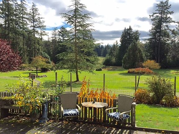 Charming elegant country home, 2,020 on five +/- sunny, private acres, with additional 1,232 sf two bdrm home, both surrounded by gardens and rolling lawns. Original owner of main home has meticulously cared for buildings and property. Sit back and enjoy looking over the expansive grounds to your pond from your any of your decks, including a large covered area for outdoor living, and brick patio surrounded by gardens. Cozy living room features Rumford fireplace with cast concrete mantle. This special property also includes a large shop with pellet stove, a single car garage plus freestanding garage, and greenhouse.
