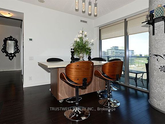 Experience the charm of Toronto's iconic Distillery District, where cobblestone streets, art galleries, fine dining, and vibrant culture come together. This spectacular 2-bedroom, 2-bath corner suite is a fully furnished residence featuring floor-to-ceiling windows, a wraparound balcony with unobstructed southeast views, and hardwood flooring throughout. Enjoy an open-concept kitchen with extended cabinetry, granite counters, backsplash, and a rolling stone-top island. Exceptional building amenities and a prime location - steps to boutiques, artisan shops, craft breweries, restaurants, TTC, Gardiner Expressway, DVP, and more - make this an ideal urban retreat.